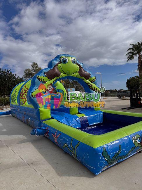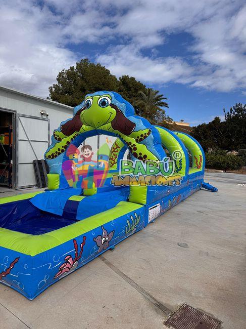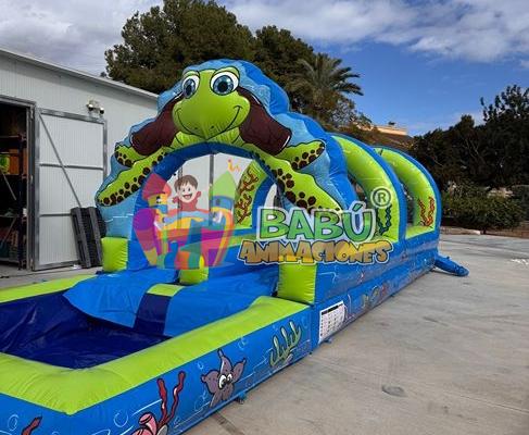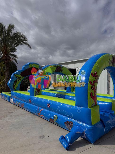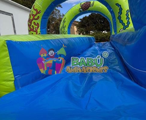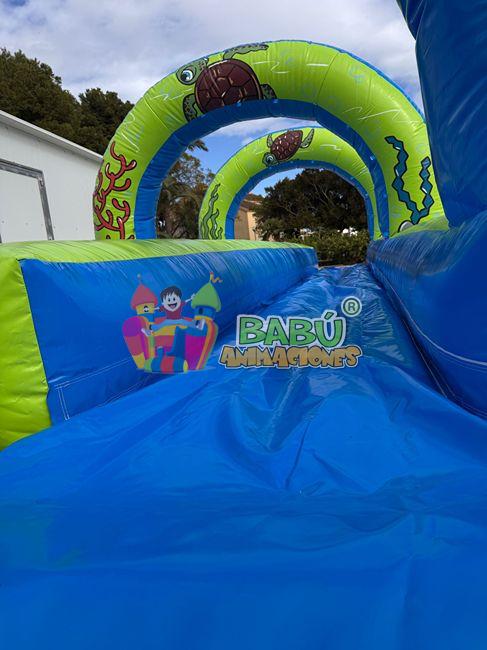 Este divertido deslizador acuático tiene 10 metros de largo por 3,20 metros de ancho y 2 metros de alto.